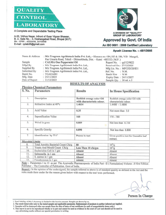 Calma One is a full-spectrum Vijaya oil, offering faster absorption and versatile usage, with higher concentration and purity compared to edible formats.